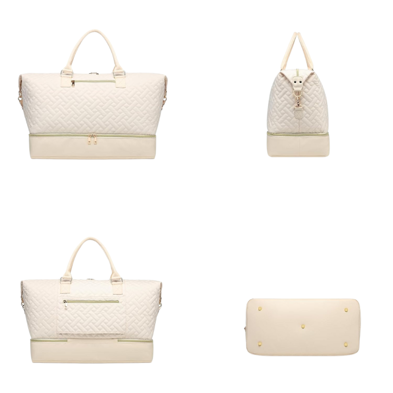 • Quilted Weekender Duffel Bag With Shoe Compartment