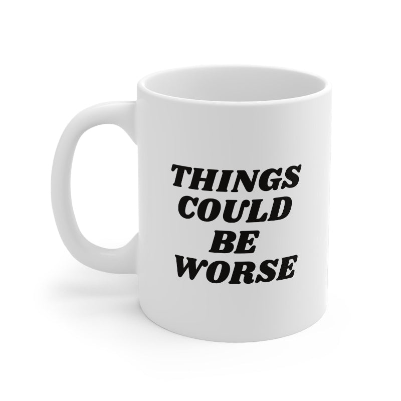 Start your day with a humorous yet uplifting reminder to keep life in perspective. This thoughtfully designed ceramic mug features a simple yet impactful message to add a touch of positivity and lightheartedness to your coffee or tea ritual. Whether at home or the office, this mug is a great companion for those moments when you need a little encouragement and a smile.