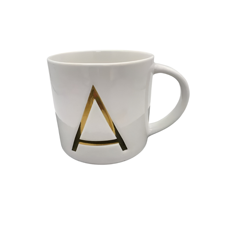 Sip your favorite coffee, tea, or hot cocoa in style with this 15oz Coffee Mug With A Print. Featuring a beautifully crafted gold "A" on a classic white ceramic base, this 15oz mug adds a personal touch to your daily routine or makes a thoughtful gift for someone special. Its timeless design blends seamlessly with any kitchen or office decor, combining both luxury and practicality.