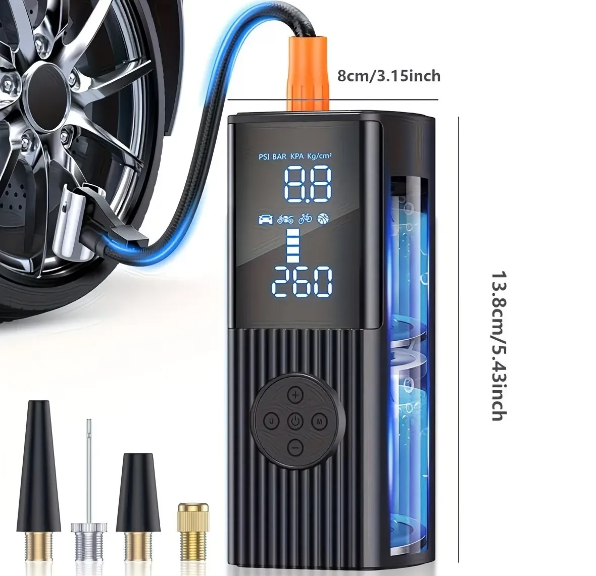 The Portable Tire Inflator With LED Light For Cars stands out due to its ease of use, high-pressure capacity, and multifunctionality. It’s a reliable tool for anyone who values convenience and efficiency. With its rechargeable battery and digital gauge, you can be confident that your tires are always in top condition, whether you're at home, on the road, or on a biking adventure. The added LED light ensures you can use it in any situation, even in low-light environments.