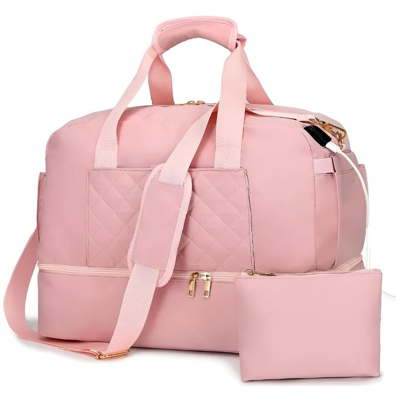 This 2-piece travel duffle bag and pouch set with a USB port offers a perfect blend of functionality and style. Stay organized and connected on your travels with this thoughtfully designed and spacious bag set.