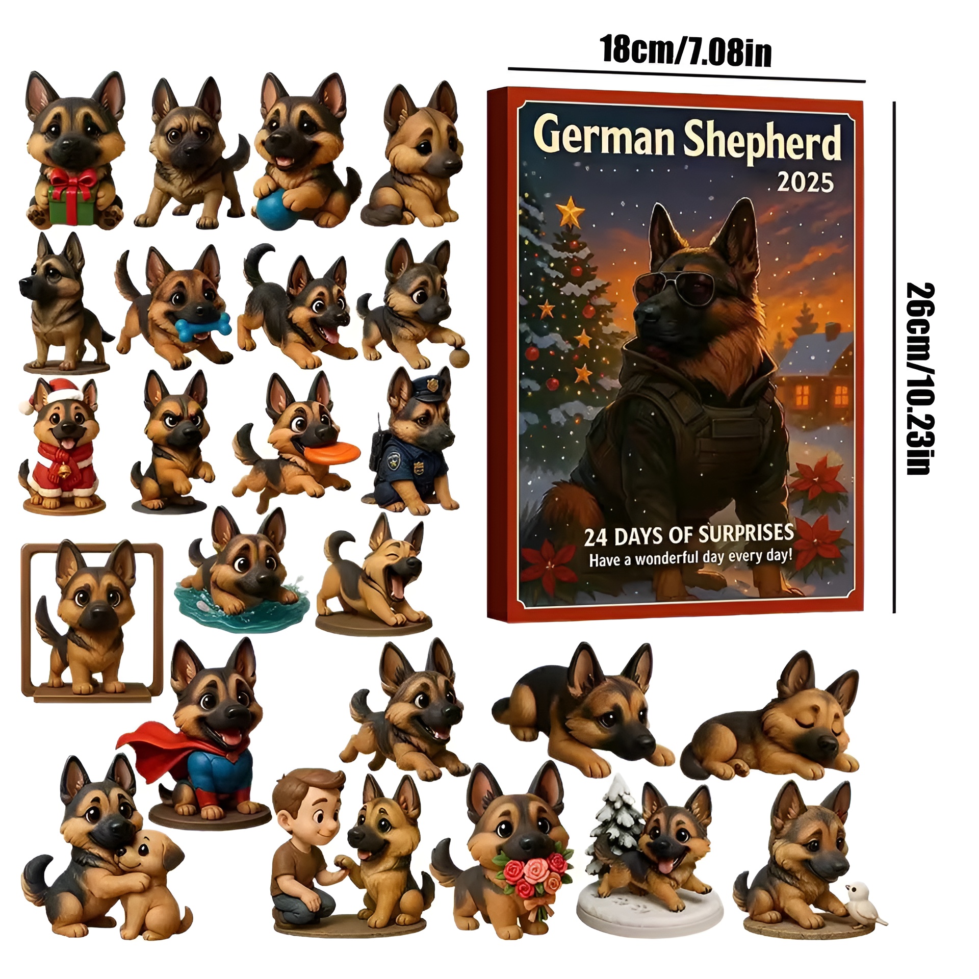 This 2025 German Shepherd Christmas Advent Calendar offers a festive way to count down the days to Christmas. With its German Shepherd theme, acrylic construction, and 24 ornaments, it supports seasonal activities and decorative displays. The 2025 German Shepherd Christmas Advent Calendar enriches the holiday season with charm, anticipation, and daily enjoyment. It is a practical gift option and a warm addition to any household preparing for the holidays.