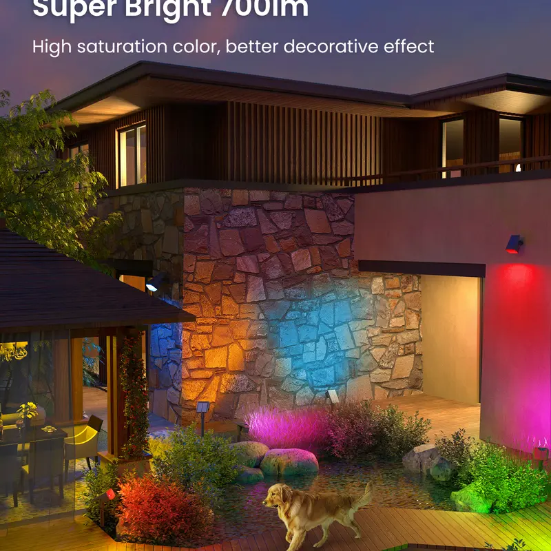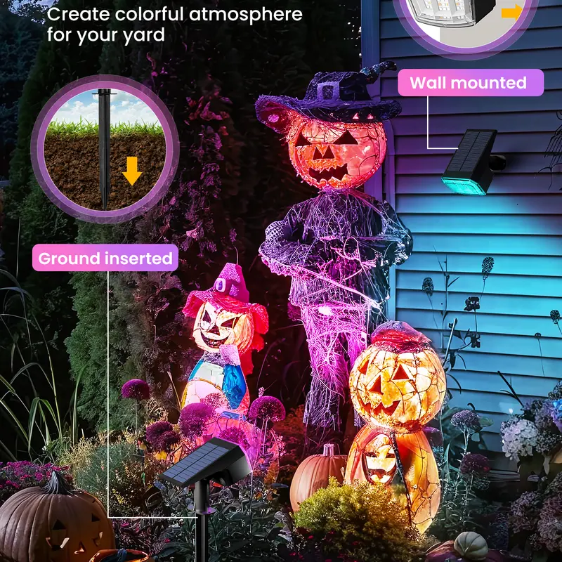 These 9 Lighting Modes Solar LED Spot Lights For Outdoor Decorations are designed to enhance outdoor spaces with vibrant, versatile lighting. Featuring 63 high-power LEDs, they emit 700 lumens and 9 distinct lighting modes, including 8 static single-color options and a dynamic RGB mode. Their compact size integrates seamlessly into various landscapes, providing illumination for a wide range of outdoor areas.