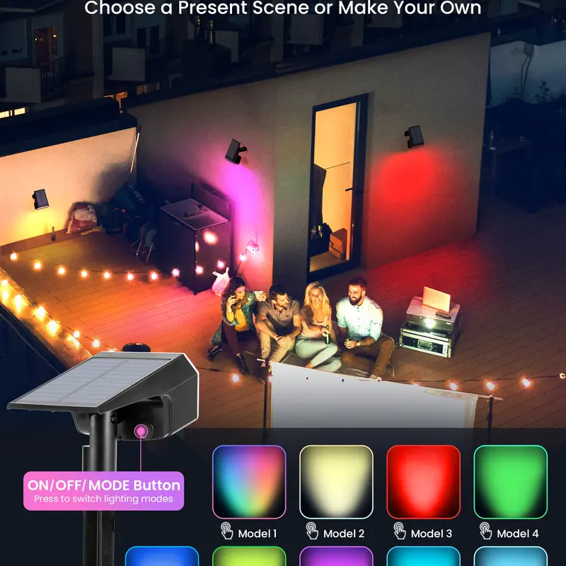 The 9 Lighting Modes Solar LED Spot Lights For Outdoor delivers a customizable lighting experience, enhancing any outdoor setting with ease and reliability. They are a practical addition to any landscape, providing both visual appeal and functionality.