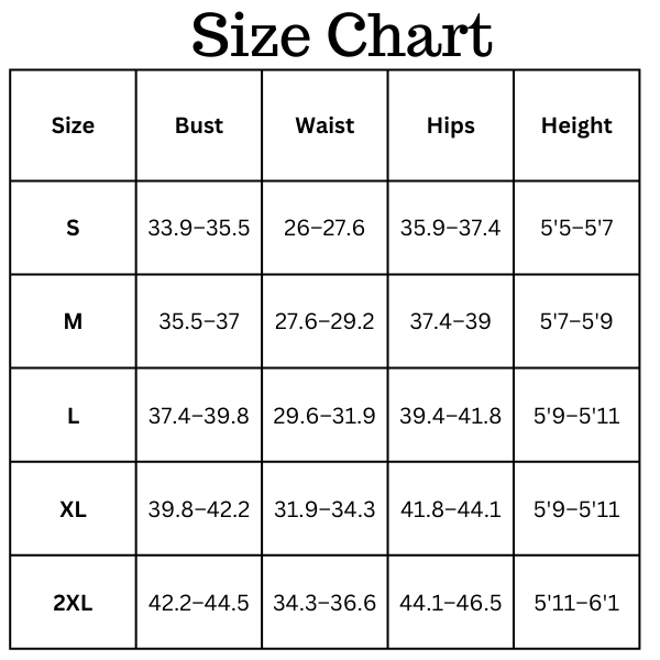 Size chart(inches):