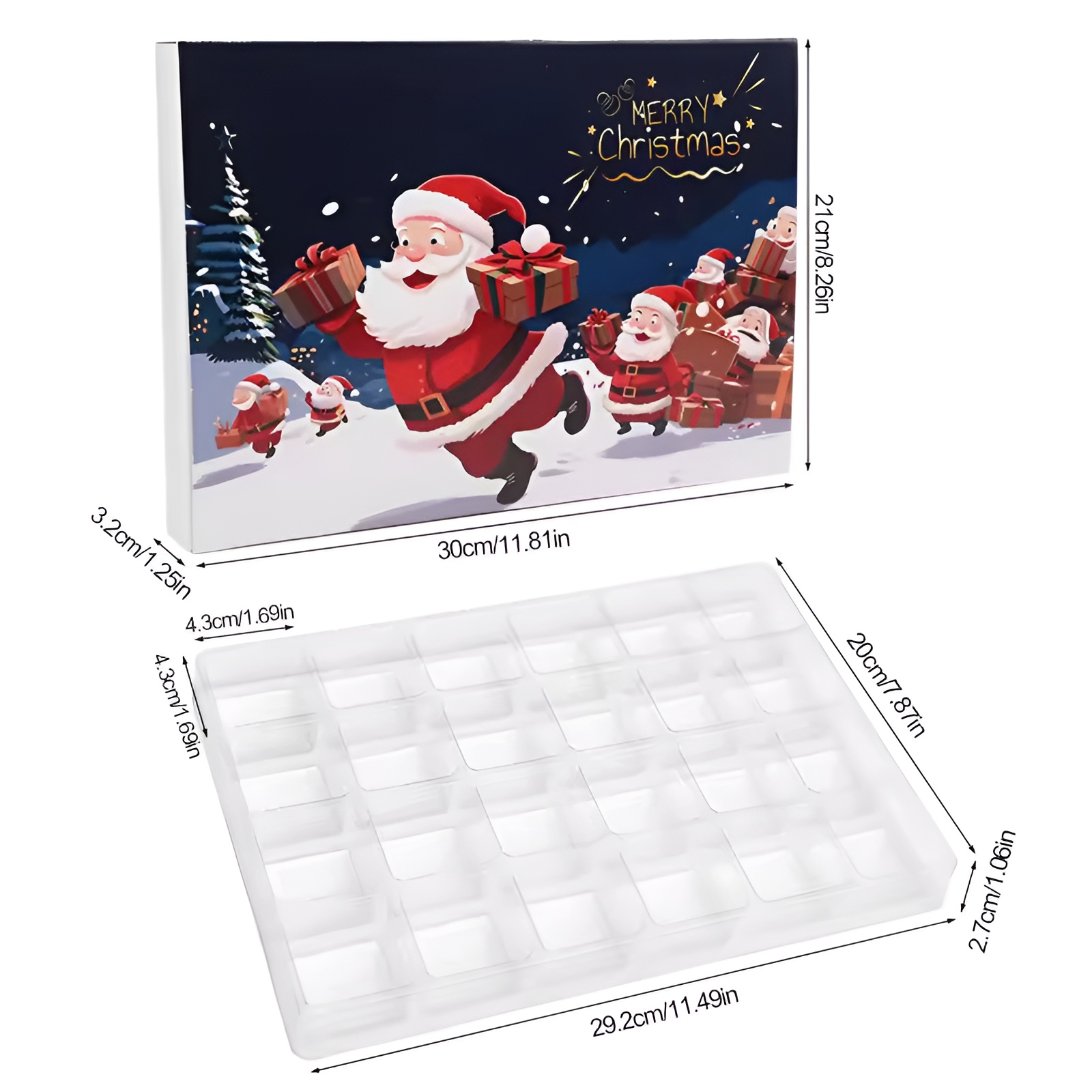 The Christmas Advent Calendar 2025 DIY Fillable Countdown Box provides a customizable and engaging way to celebrate the holiday countdown. Designed for families, classrooms, and creative decorators, this fillable advent box features twenty-four individual compartments. Each space allows users to insert their own gifts, creating a personalized experience throughout December. The Santa Claus-themed layout adds classic holiday charm, making it suitable for seasonal displays in living rooms, bedrooms, and gathering spaces.