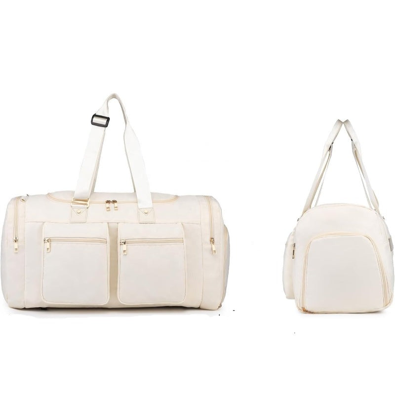 This Convertible Beige Travel Garment Bag with Shoe Pouch is the perfect blend of style and functionality, ensuring you travel in fashion while keeping your essentials neatly organized.