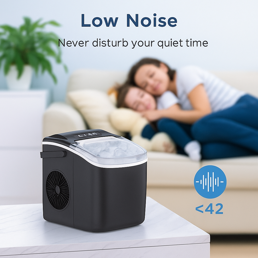 Equipped with a low-noise motor, the Quiet Ice Machine operates with minimal sound, producing less than 40 decibels during use. This allows it to function in spaces like living rooms, studio kitchens, or shared lounges without distraction.