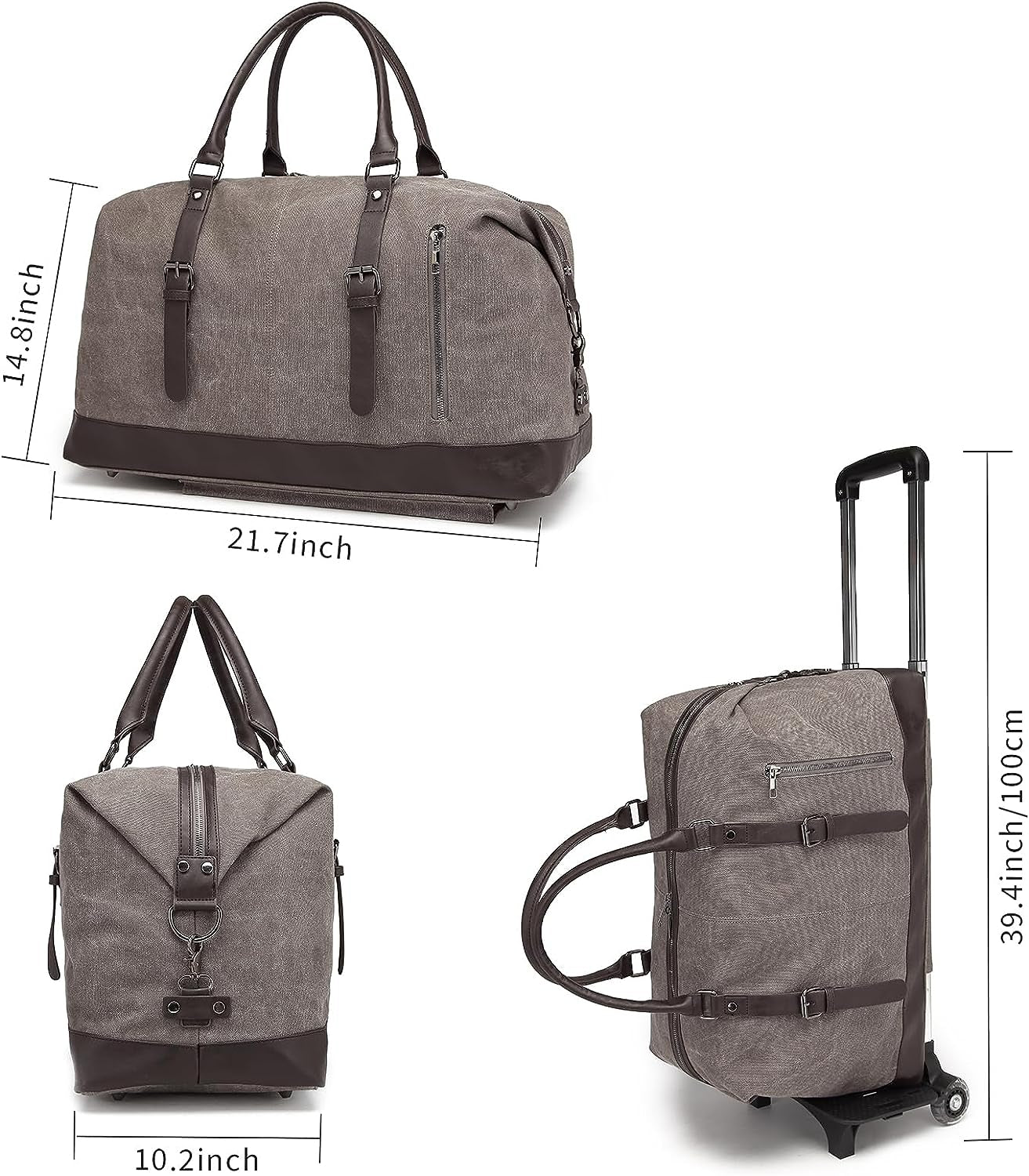 - Design: The luggage features a classic duffle shape with contemporary elements such as sleek lines and an elegant color scheme.