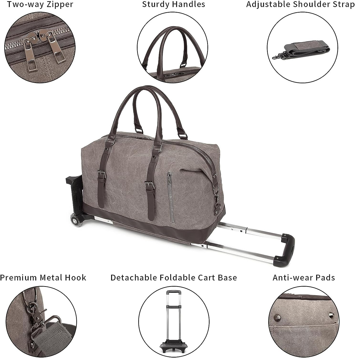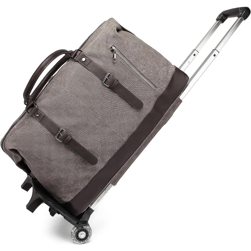 These detachable Handle Duffle Bags combines practicality with a stylish flair, ideal for travelers seeking a blend of functionality and fashion. The textured grey fabric paired with dark faux-leather accents offers a mature look suitable for both business and leisure travel.