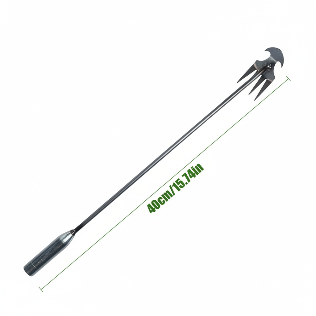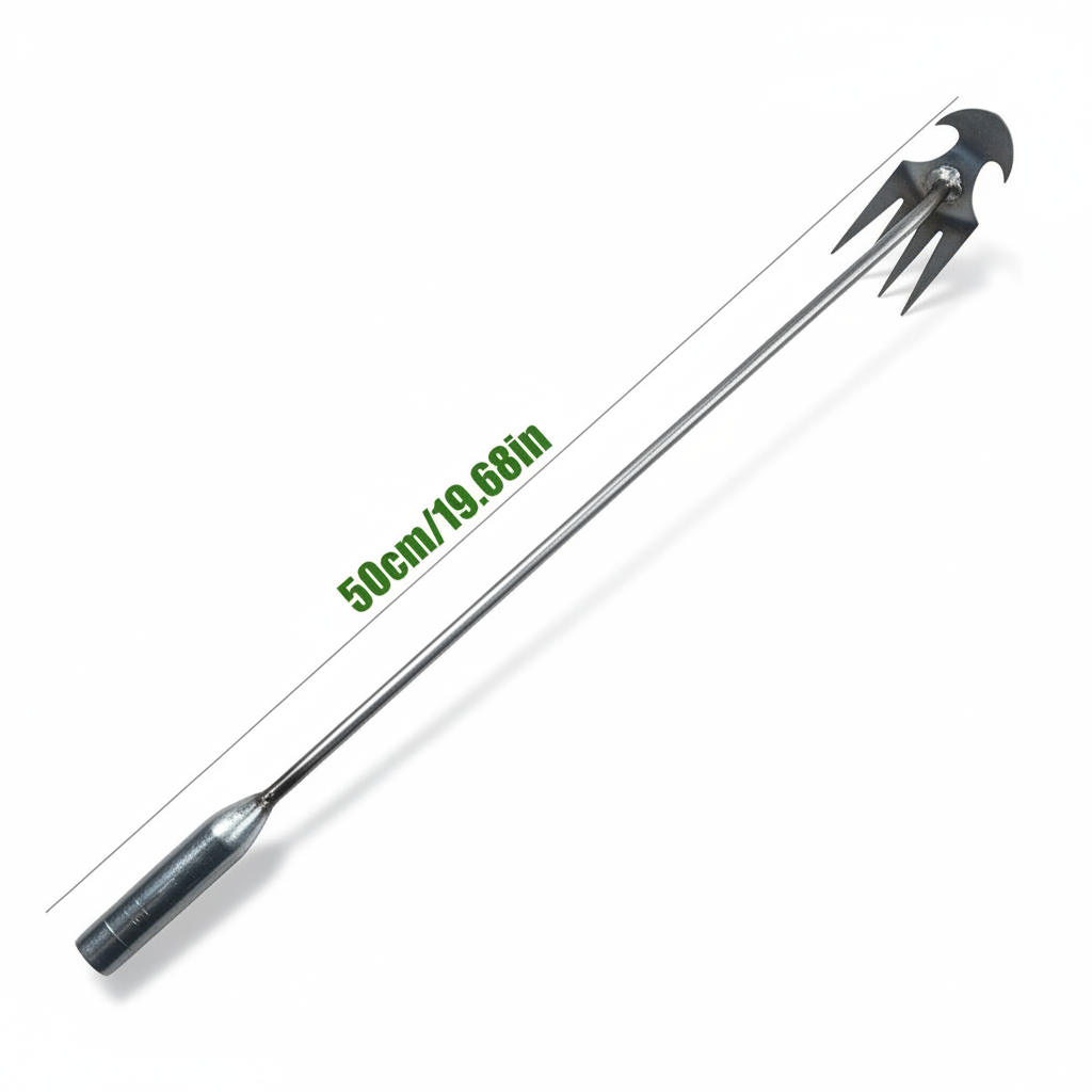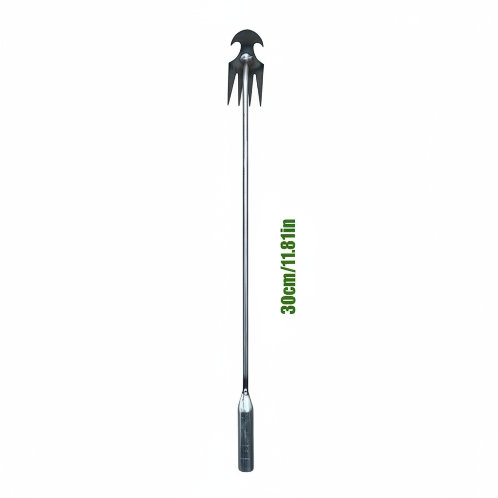 The tool is available in lengths of 11.81, 15.75, and 19.69 inches, providing options for different task requirements. It is a 4-tooth dual-purpose weeder, enhancing its application for diverse weed types. This long-handled garden manual weeding tool requires minimal maintenance. The design supports efficient uprooting of weeds, making garden care straightforward and productive.