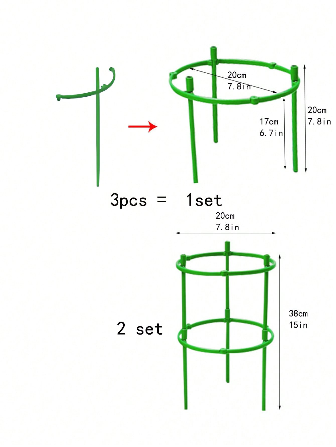 Designed for practical gardening, these stakes are easy to place in soil and provide immediate support. The set packaging offers flexibility to accommodate gardens of different sizes or to support multiple plants simultaneously, making it a convenient choice for both novice and experienced gardeners.