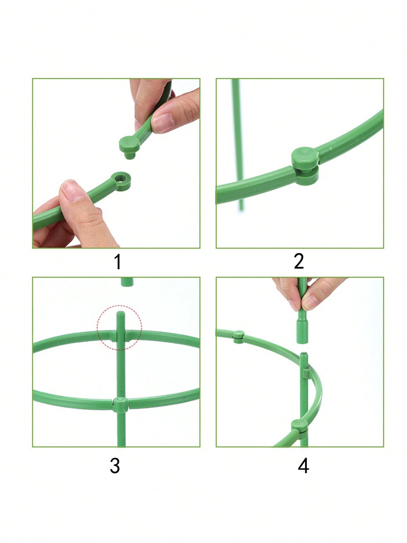 Constructed from green plastic, this plant support stake is built to withstand various weather conditions, ensuring it remains a reliable garden accessory season after season. The material choice guarantees a long lifespan without compromising its structural integrity as it supports the weight of growing plants.