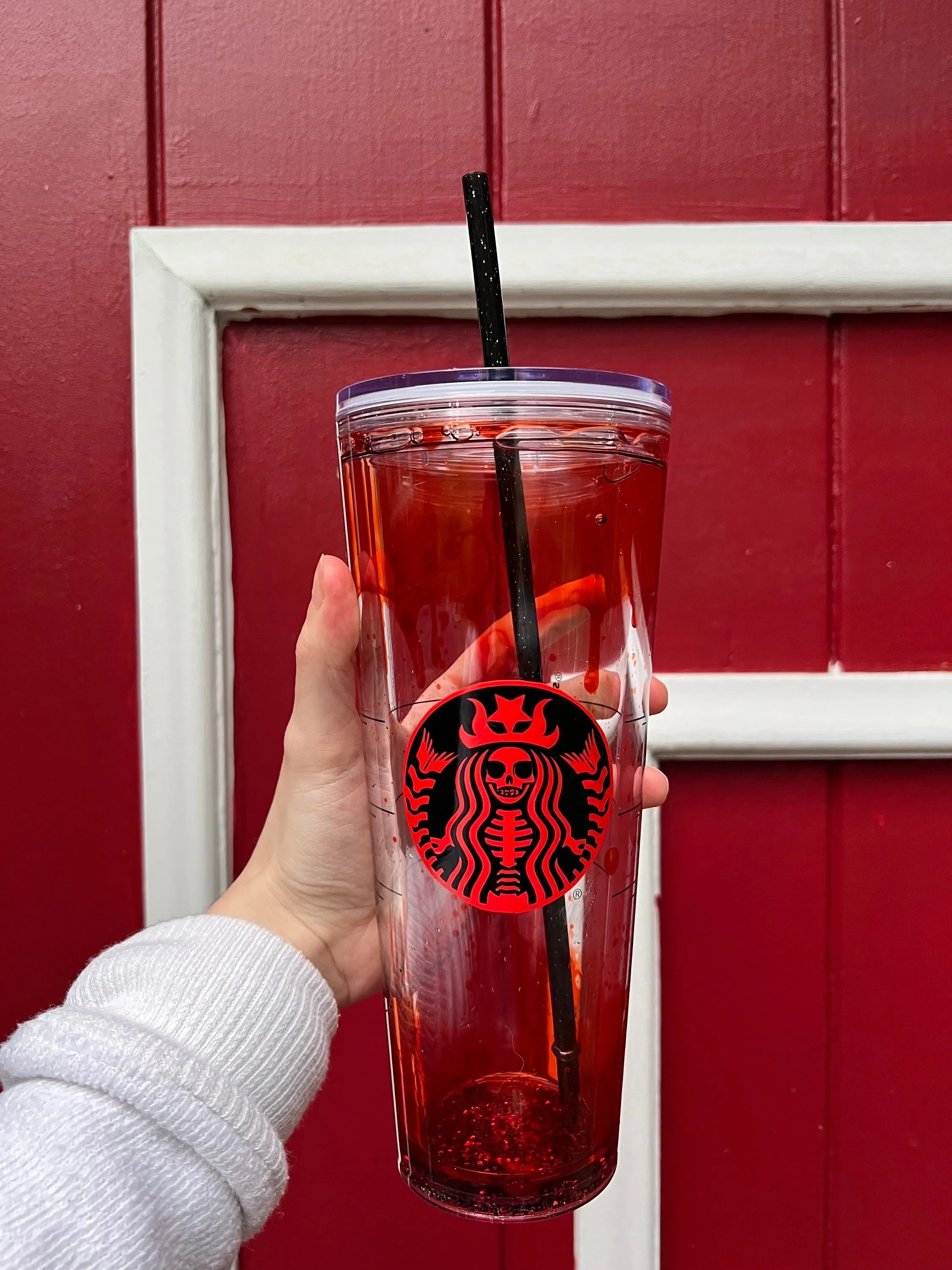 This tumbler is ideal for any beverage and is sure to draw attention with its distinctive design. Inspired by the intriguing fusion of crimson swirls and snow globe aesthetics, it boasts a one-of-a-kind and appealing appearance. Perfect for Halloween celebrations or everyday use, this tumbler adds a touch of whimsy to any setting.