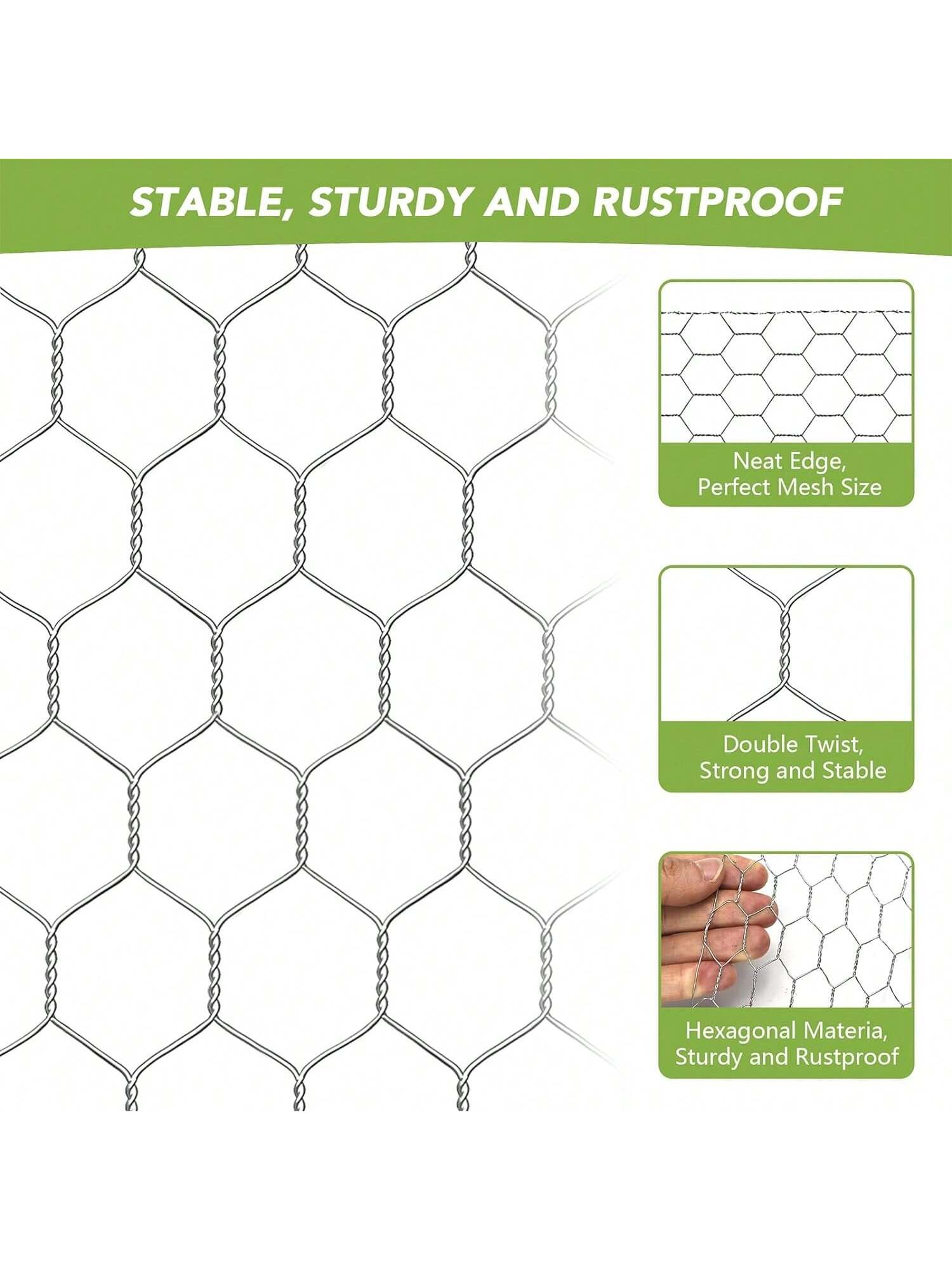 Compared to flimsy plastic netting, this Iron Alloy hexagonal mesh offers strength and stability for creating enclosures. Its galvanized finish provides resistance to rust and corrosion, ensuring a longer lifespan in outdoor conditions, unlike untreated wire. The precise hexagonal pattern is more effective at deterring predators and preventing escapes than irregular mesh designs.