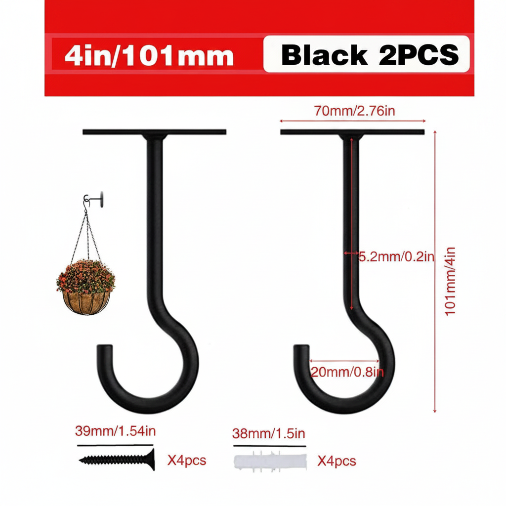 These versatile hooks complement a wide range of home and garden decor items. Pair them with hanging planters to create a vertical garden, or use them to display decorative lanterns on your porch. They also serve functional purposes for hanging bird feeders in the garden or lamps for ambient indoor lighting.