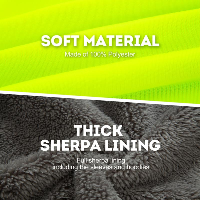 High Visibility Reflective Workwear Zip Jacket is a zip-front outer layer designed for jobsite routines, roadside tasks, and early-morning or late-day schedules where standout work apparel is preferred. The design uses a high-contrast color layout with patterned striping and a two-tone surface to create a bold look that reads clearly from a distance in everyday work settings. An attached cover with drawcord adjustment and a lined interior add comfort for cooler conditions, while the full zipper makes it simple to put on, remove, and layer over daily work clothing.