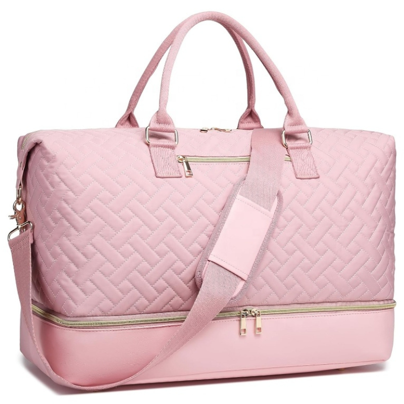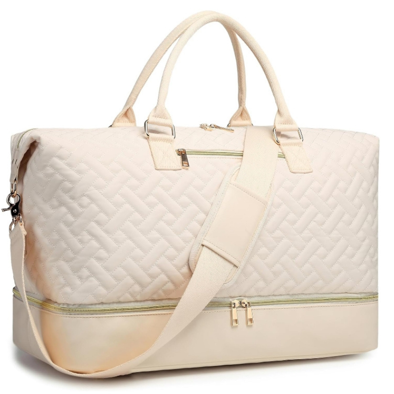 This quilted nylon weekender bag offers a combination of style and practicality, making it a reliable choice for anyone looking to travel in comfort and style.