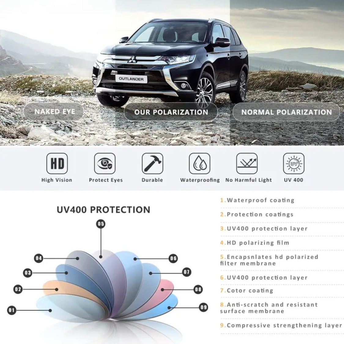 - Lens Type: High-definition polarized technology