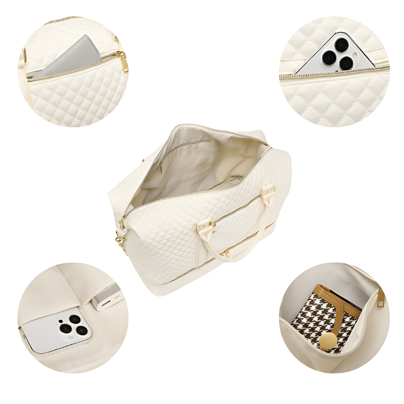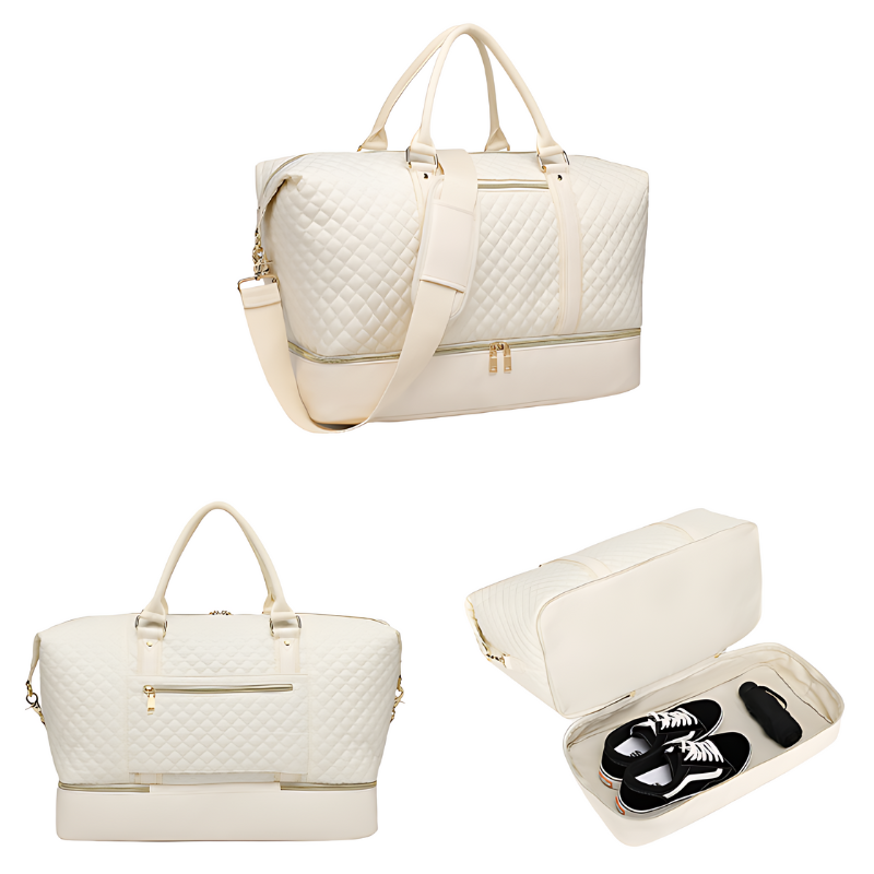 This Quilted Travel Duffel Bag With Shoe Compartment is designed to offer both elegance and functionality, making it a perfect choice for travel and gym use. Featuring a spacious design with multiple compartments, including a dedicated shoe compartment, this bag ensures all your essentials are carried with ease and style.