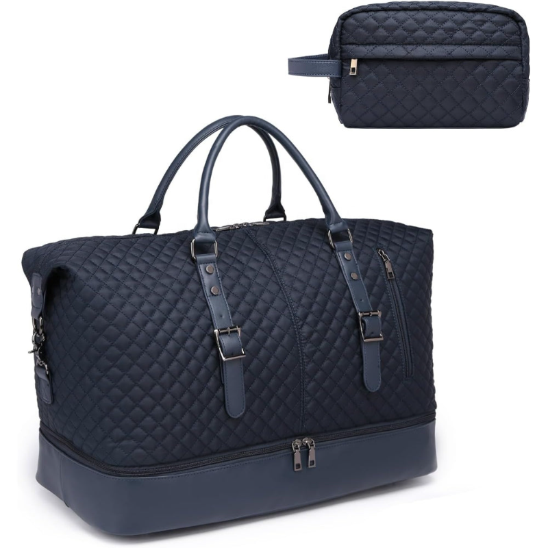 Explore the perfect travel companion with this Quilted Travel Duffle Bag With Case, complete with a matching toiletry case. Designed to combine elegance and practicality, this bag set is ideal for your travel and organizational needs.
