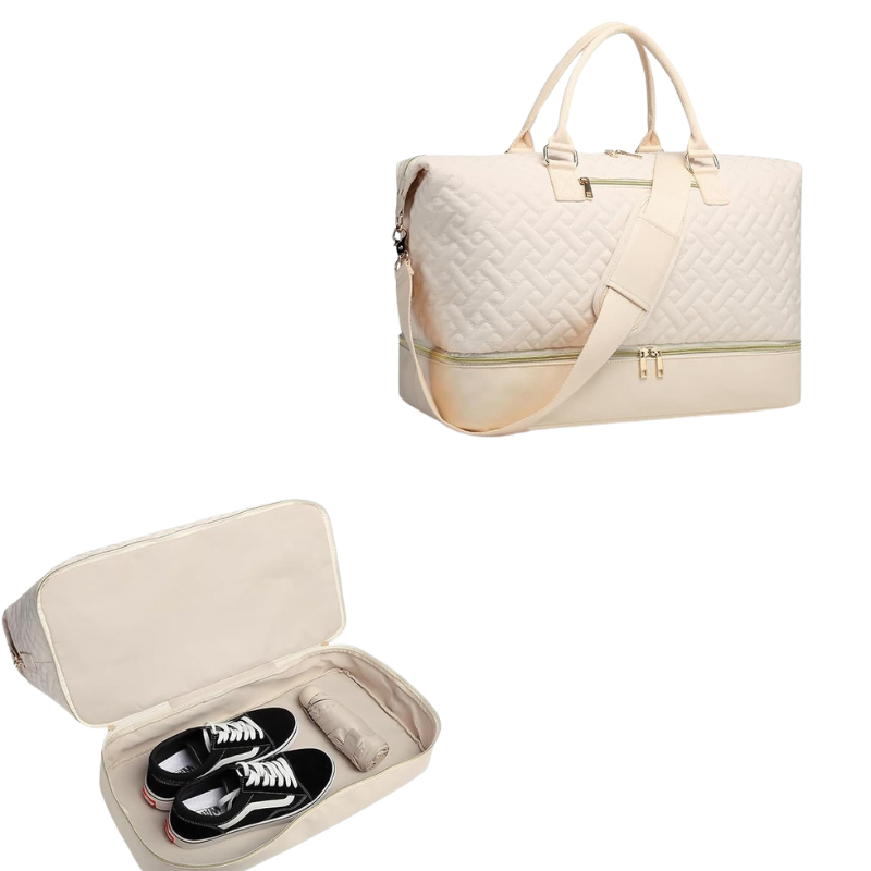 This Quilted Weekender Duffel Bag With Shoe Compartment combines elegance and functionality, perfect for travel and gym use. Featuring a spacious design with multiple compartments, including a dedicated shoe compartment, this bag meets all your storage needs while keeping a stylish appearance.