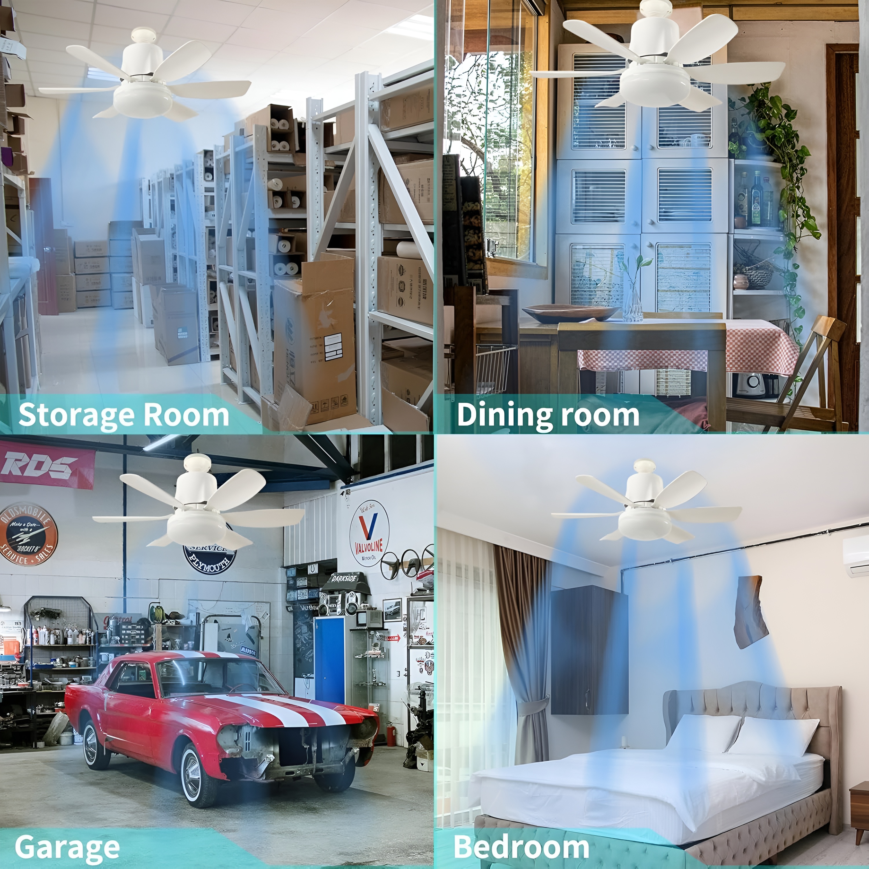 The Screw In Ceiling Fan Light With Remote Control offers a practical way to combine illumination and air circulation in one ceiling-mounted unit. Designed for standard E26 and E27 lamp holders, this ceiling fan light bulb installs directly into an existing socket without complex wiring. It delivers both airflow and lighting in a compact structure suitable for bedrooms, dining areas, study rooms, garages, and utility spaces.