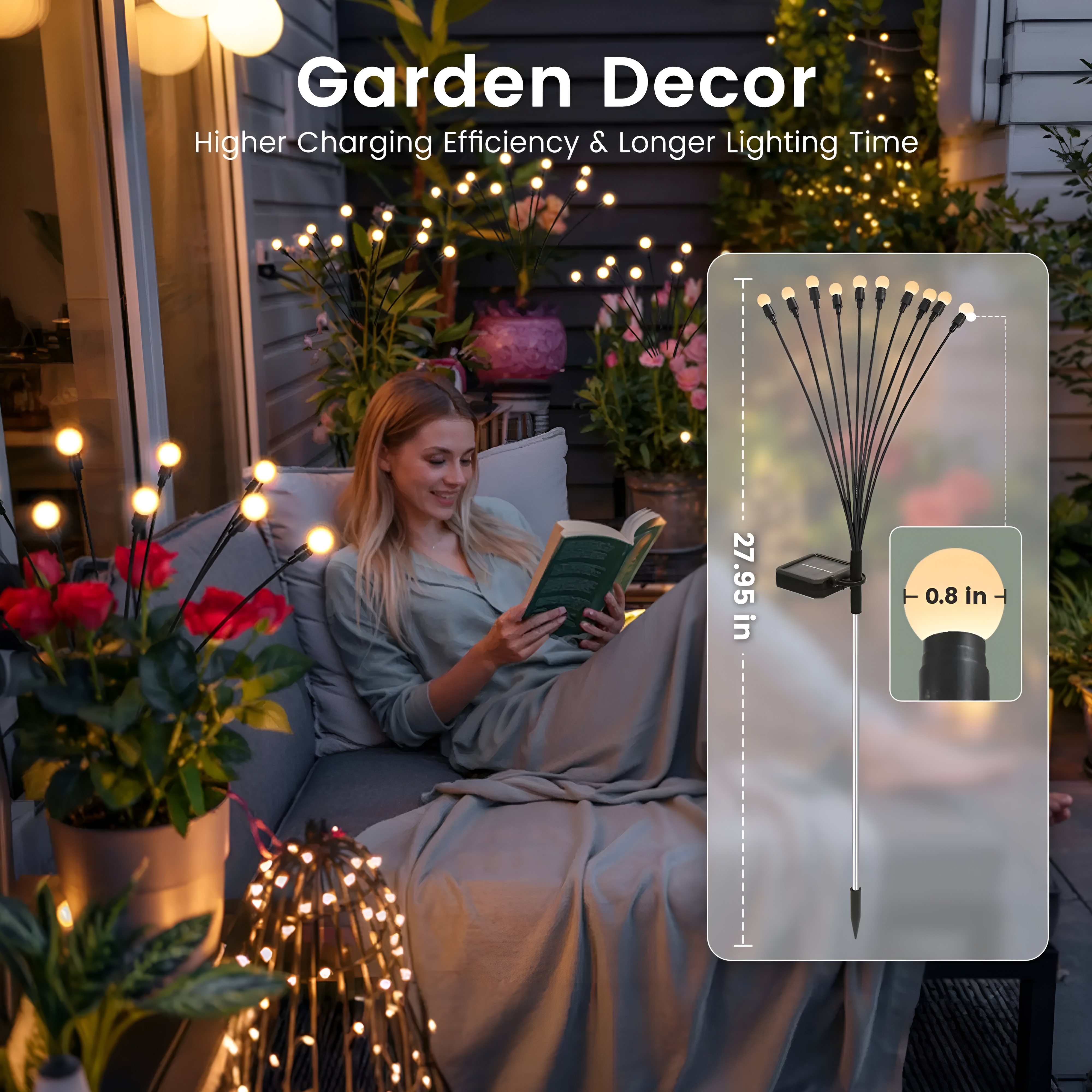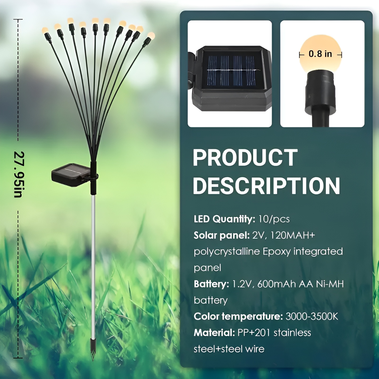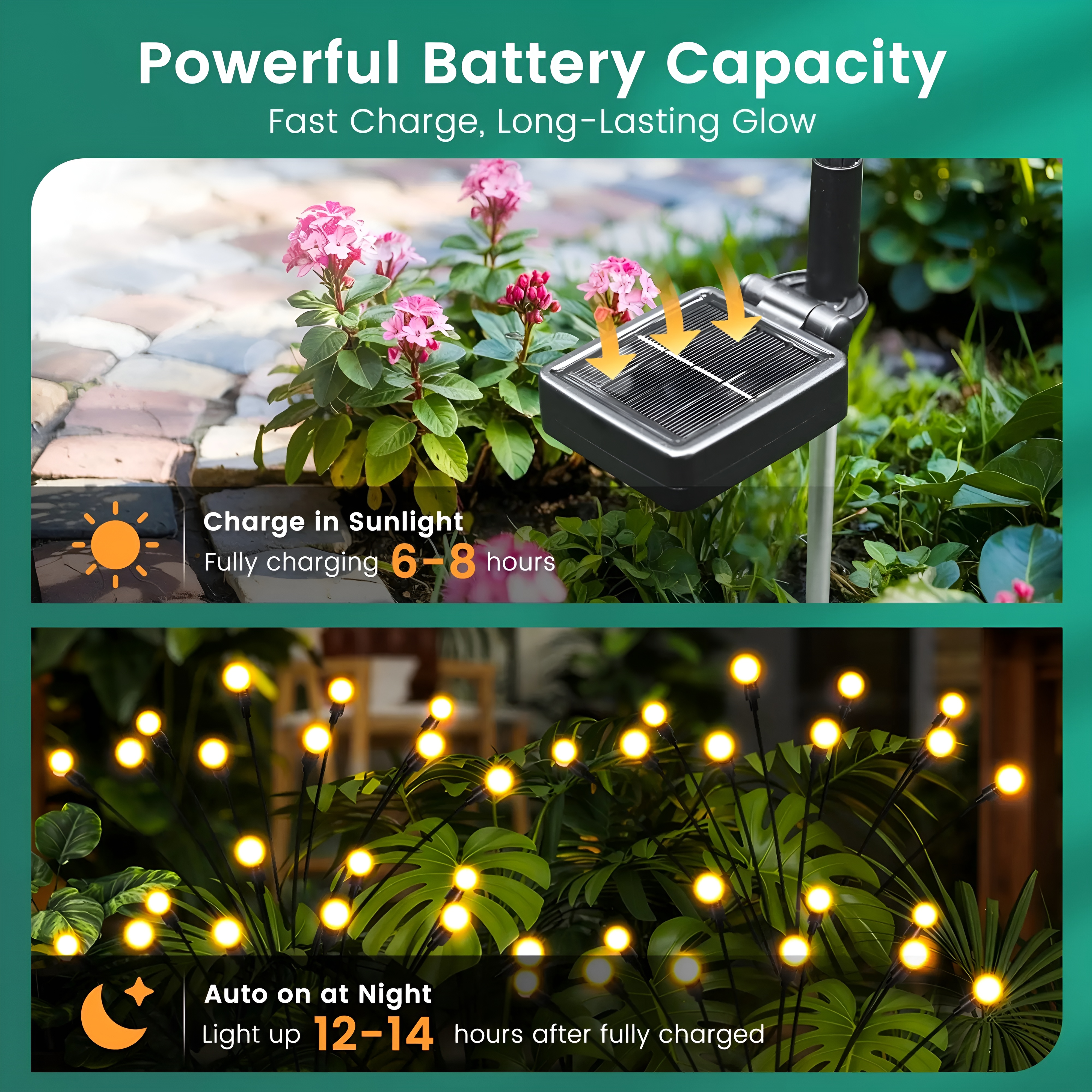 These solar firefly lights offer a combination of decorative lighting and energy efficiency. The swaying design adds motion to outdoor spaces, while solar operation simplifies usage. With easy installation and weather-resistant build, they fit various outdoor lighting needs.