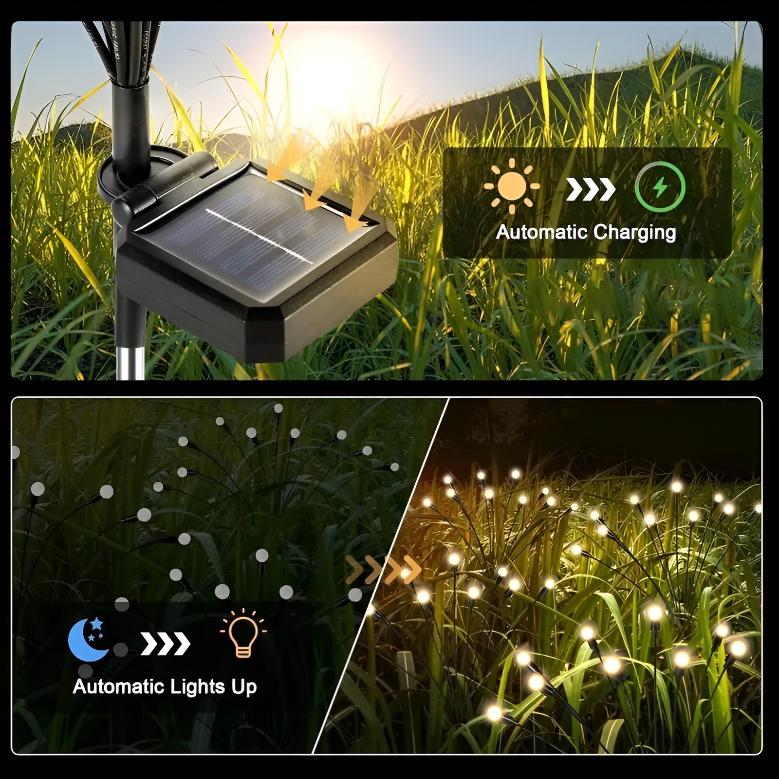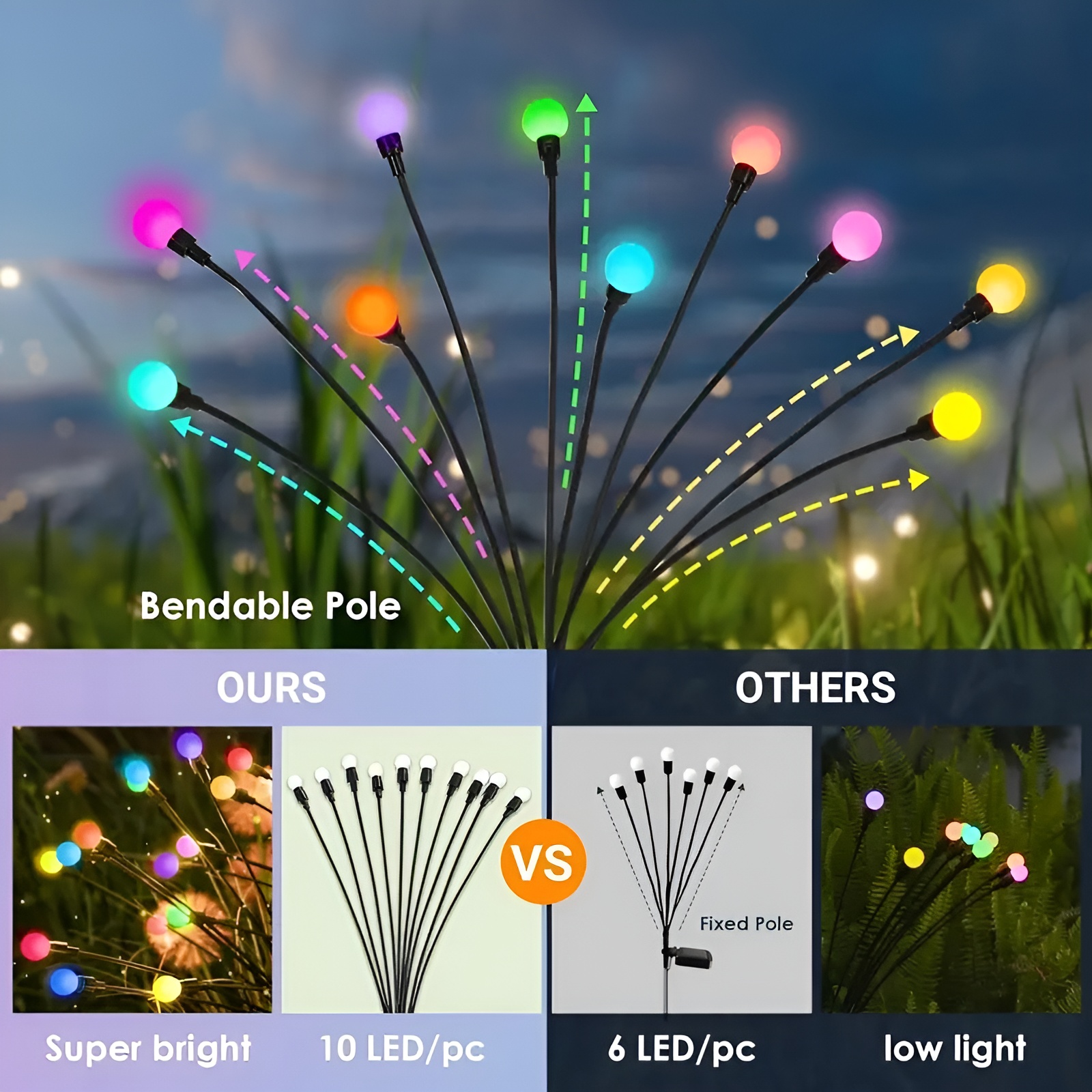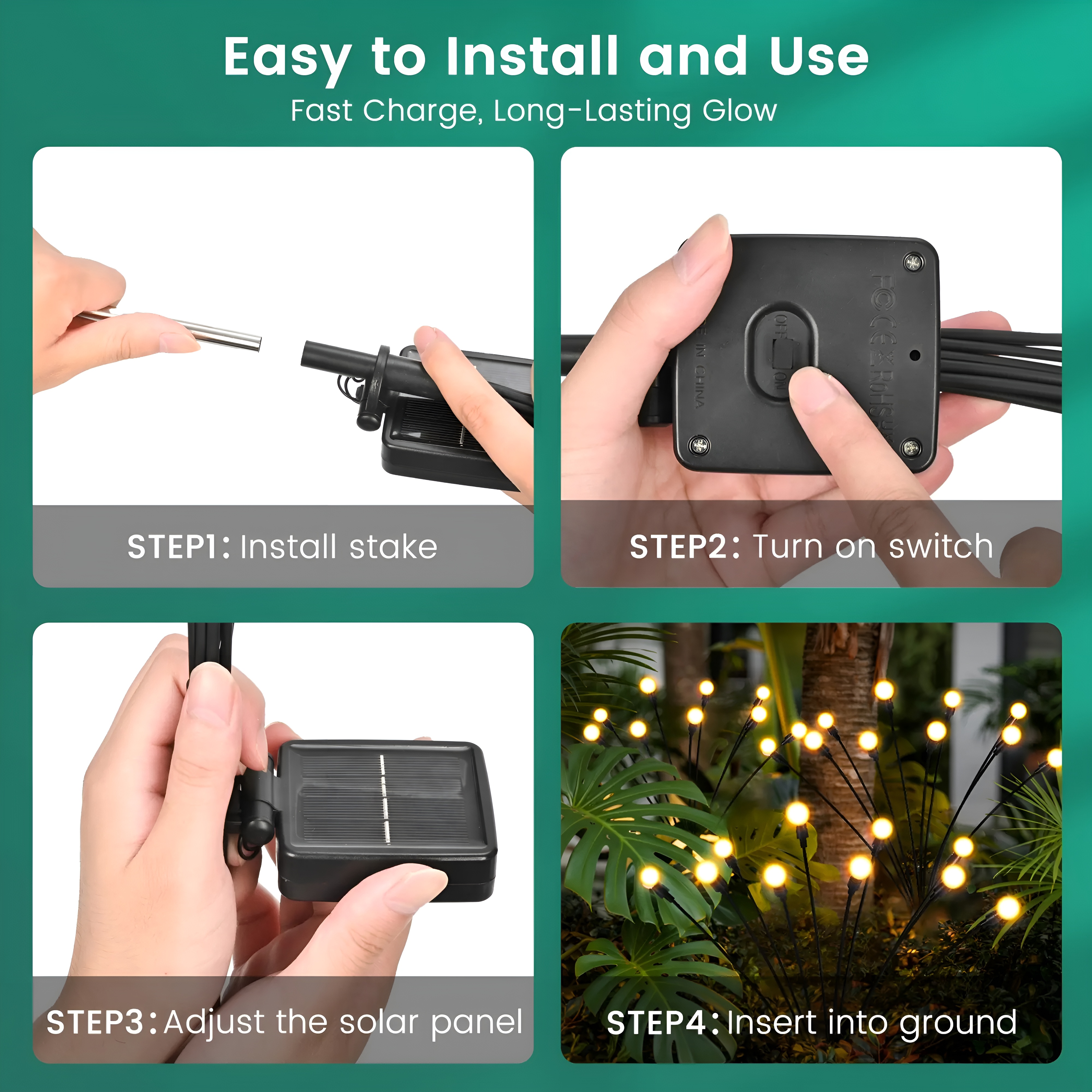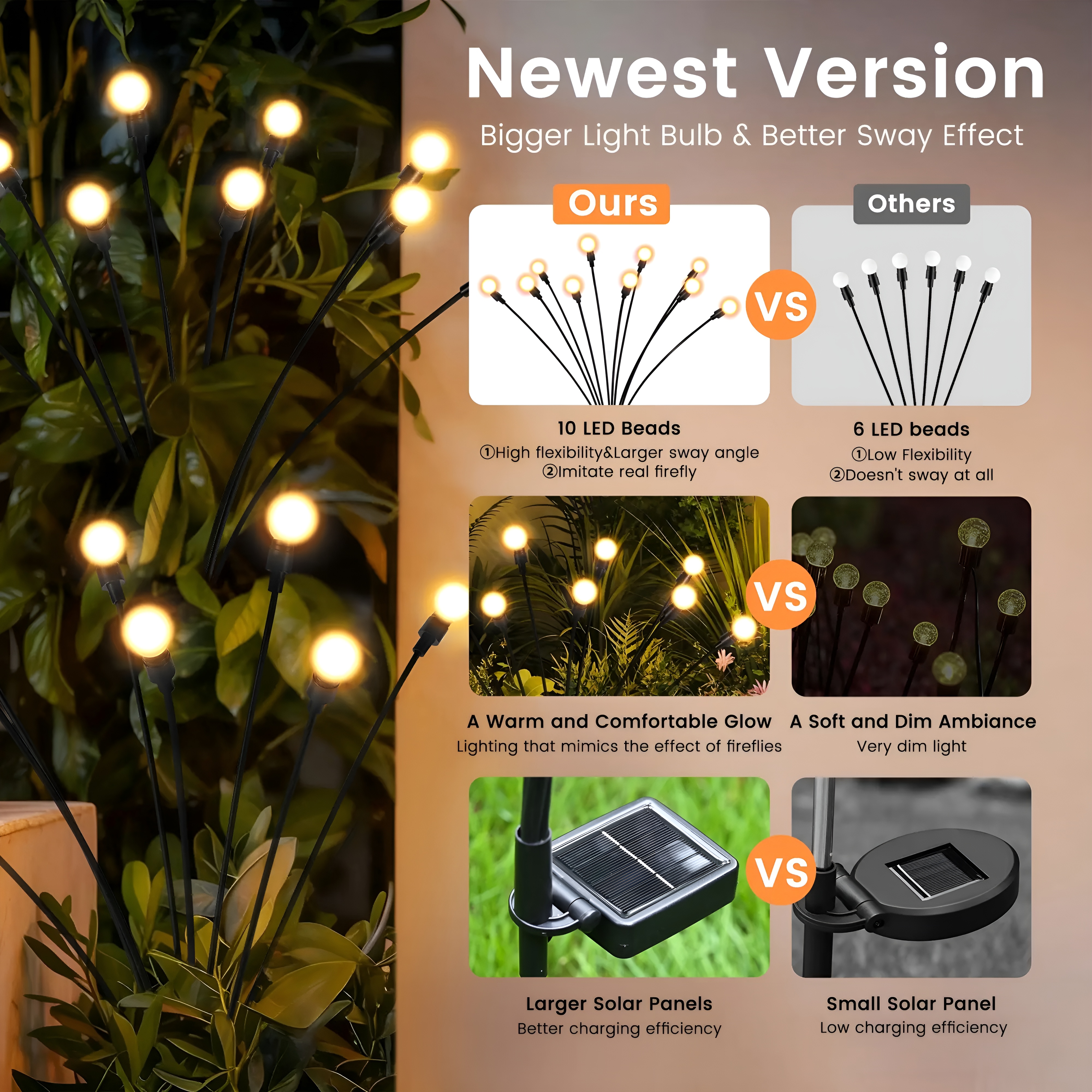 These solar firefly lights offer a combination of decorative lighting and energy efficiency. The swaying design adds motion to outdoor spaces, while solar operation simplifies usage. With easy installation and weather-resistant build, they fit various outdoor lighting needs.
