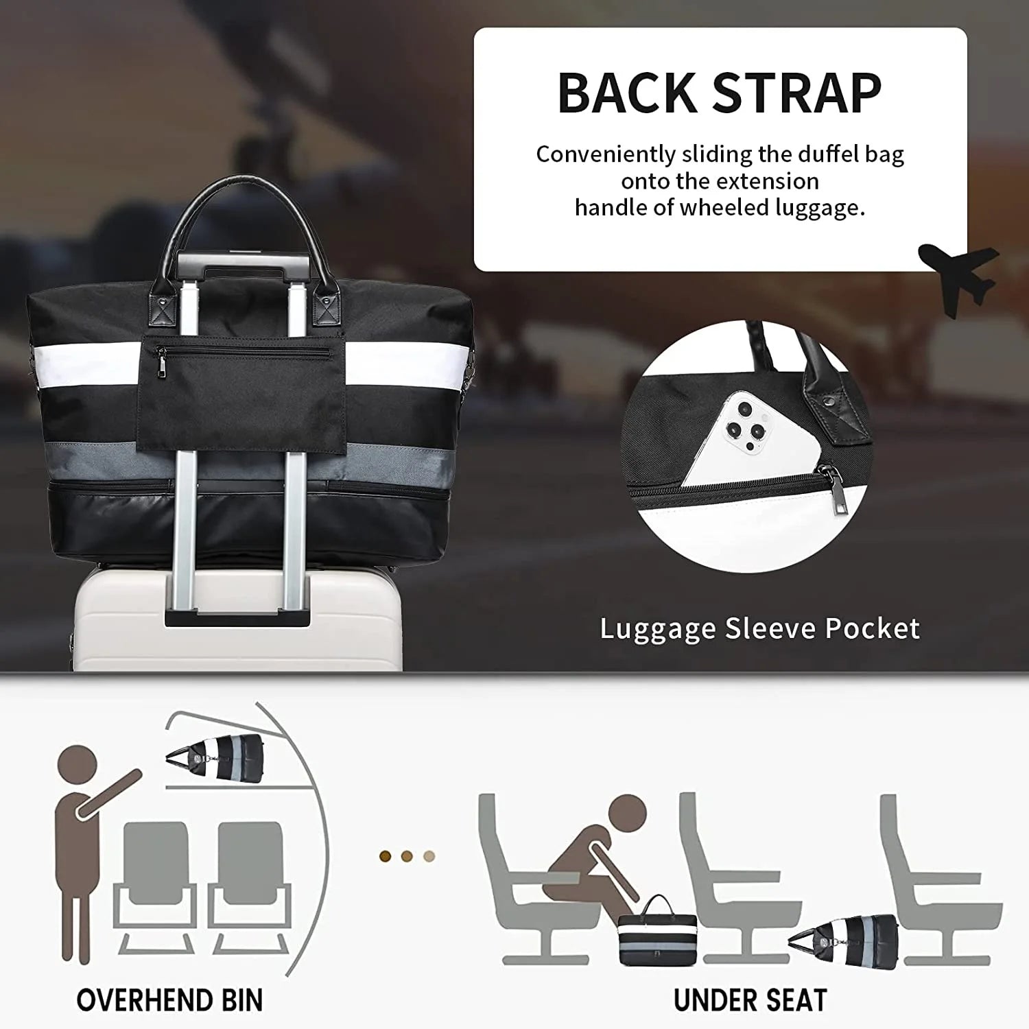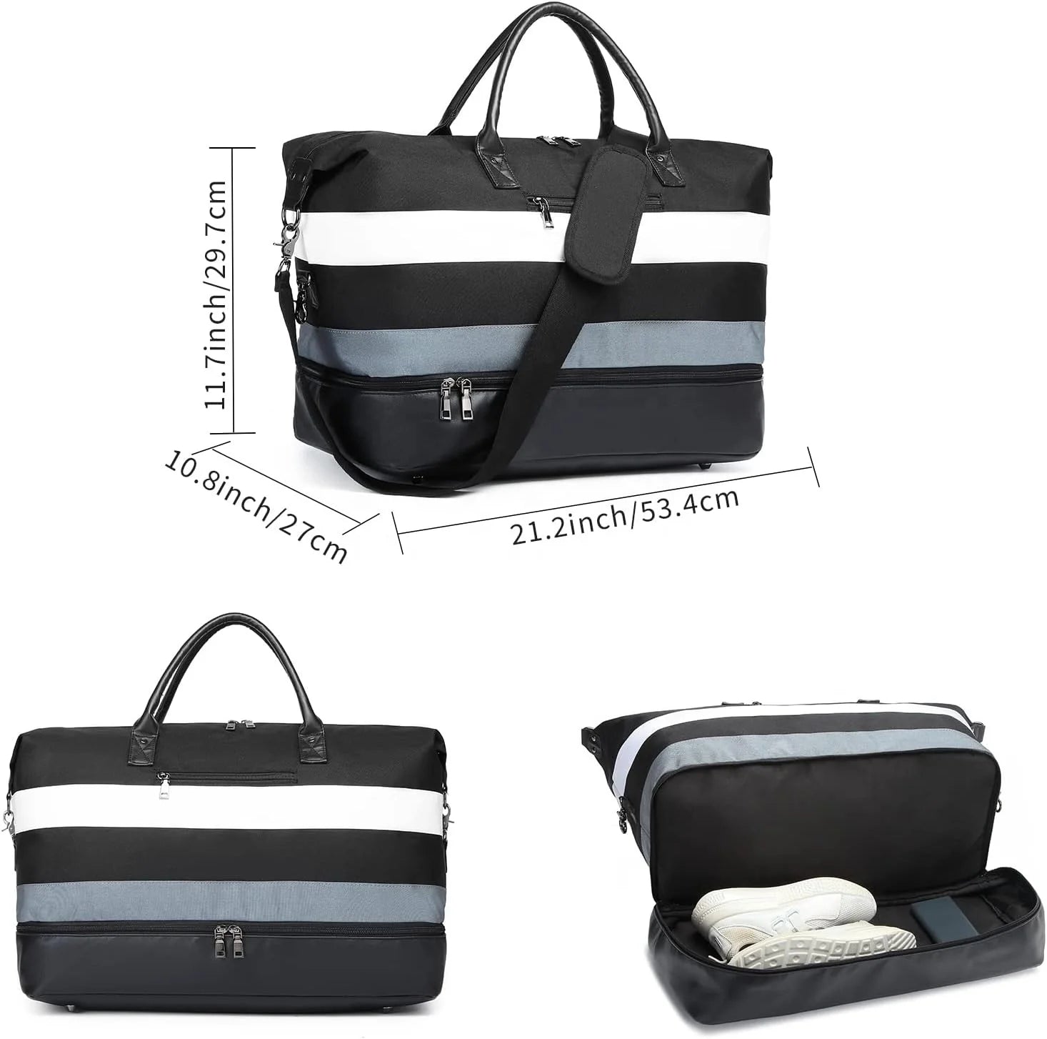 Special Features: Includes a shoe compartment and multiple zippered pockets for organized storage.