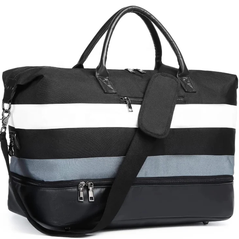 This Striped Weekender Duffel Bag is designed to provide both style and functionality, making it an excellent choice for travel and gym use. Featuring a spacious design with multiple compartments, including a dedicated shoe compartment, this bag ensures you can carry all your essentials with ease.