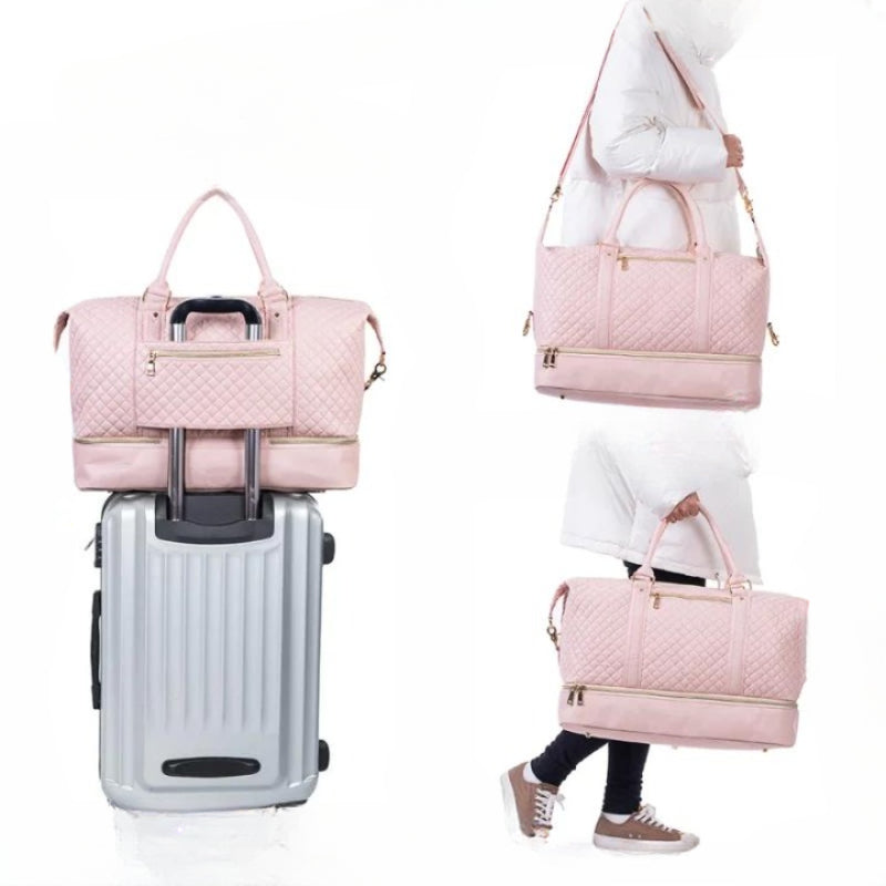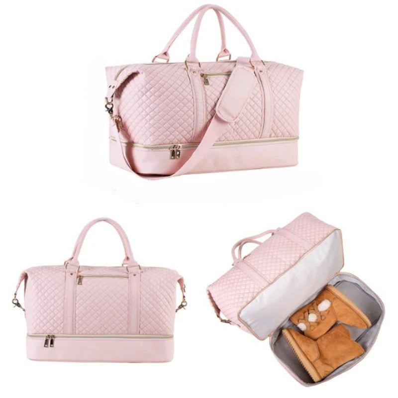 Whether you're planning a weekend escape or looking for a stylish gym bag, this quilted duffel meets all your needs with its blend of practicality and a great design.