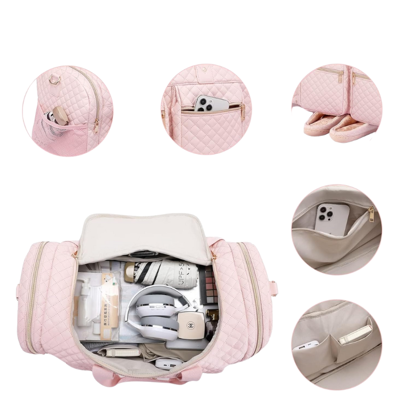 This luxury Travel Duffel Bag With Shoe Compartment is perfect for those who appreciate style and practicality. Featuring a spacious design with multiple pockets and a dedicated shoe compartment, this bag is ideal for travel and gym use.