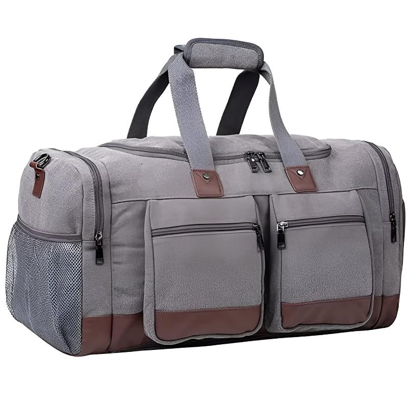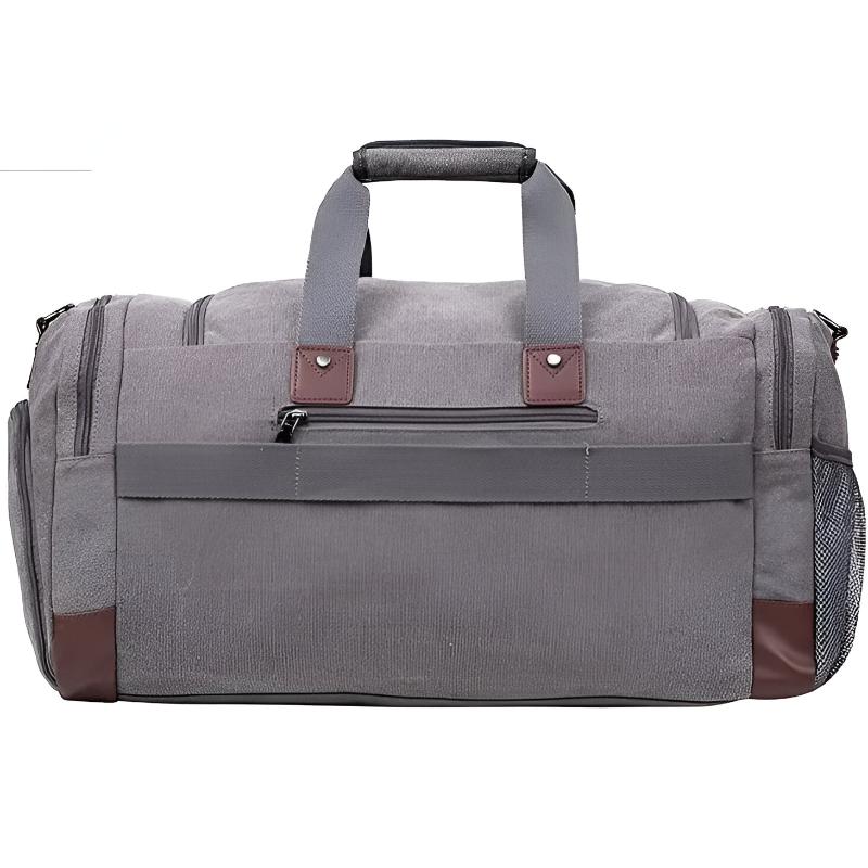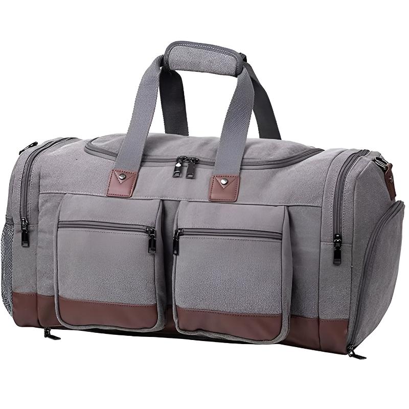 This gray duffle bag is the perfect blend of style and practicality. With its spacious compartments and thoughtful design, it is an excellent choice for those who need a reliable and fashionable travel and gym companion.