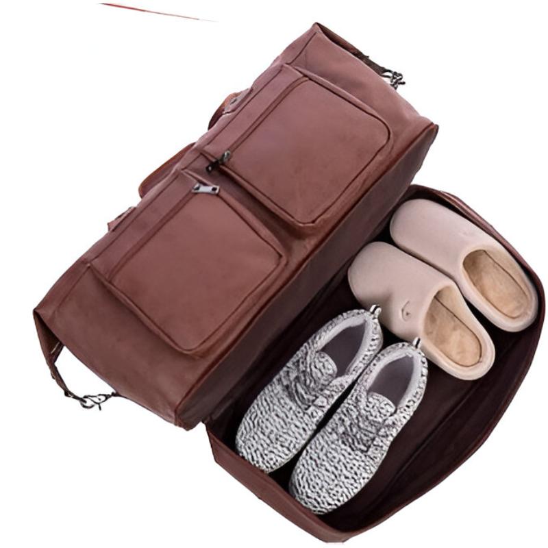 This leather travel duffel bag is a perfect blend of style and utility. Its spacious compartments and thoughtful design make it an ideal travel companion, ensuring you stay organized and fashionable on the go.