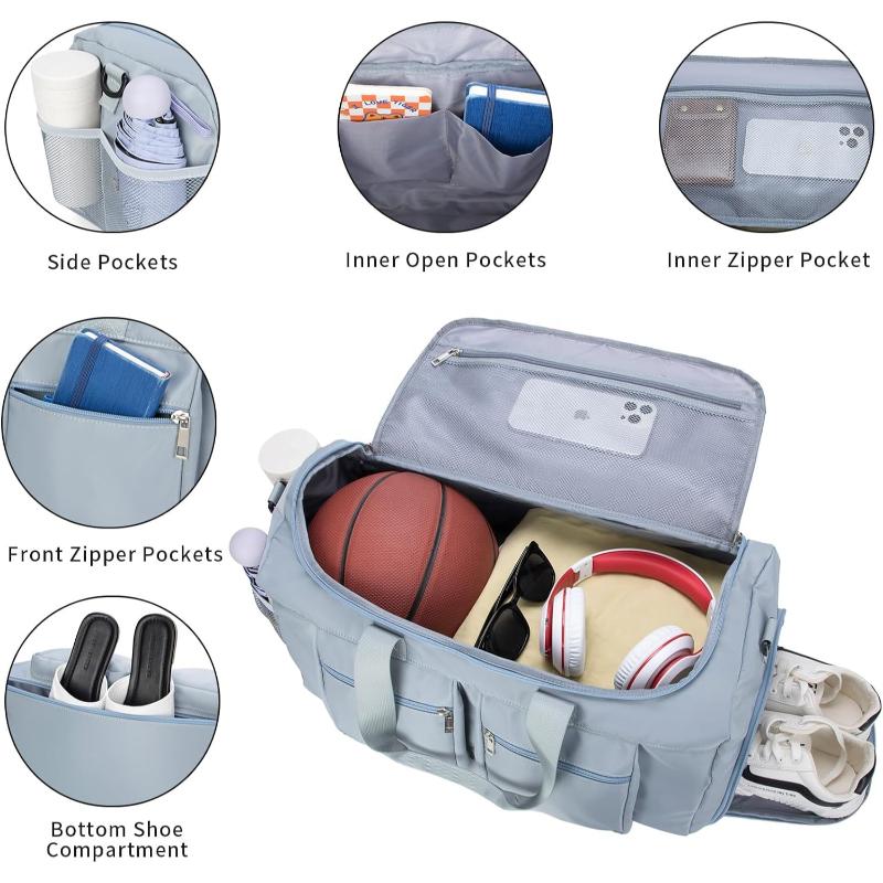 Shoe Compartment: Features a separate compartment designed to keep shoes isolated from clothing and other items, helping maintain cleanliness and organization.