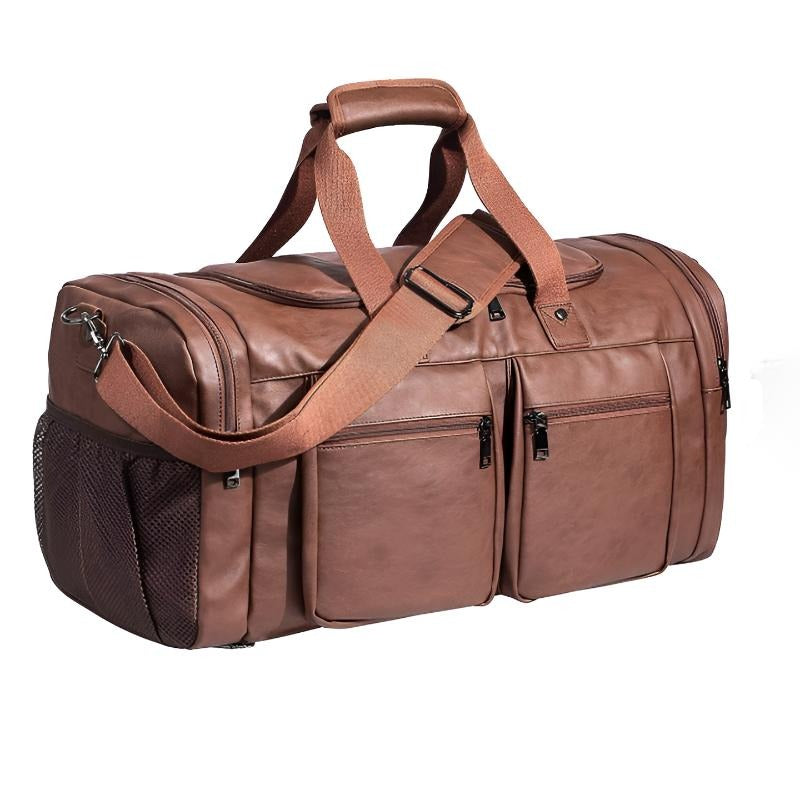 Material: The travel bag is made from high-grade PU leather, providing a durable exterior with a sophisticated look.